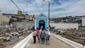 Fileiras e mais fileiras de túmulos e carreiras de gavetas se sucedem até o fundo, palmilhadas por parentes, familiares e amigos, saudosos, em prece. Deixam flores aqui e ali, lavam ou varrem lápides, lustram uma cera sobre uma pedra. Gente se encontra, conversa, mata saudades, recorda, lamenta, chora junto.
